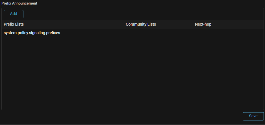 system.policy.signaling.prefixes system list populated using prefixes from the