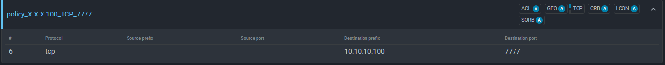 6. tcp dst X.X.X.100 dport 7777-> policy_X.X.X.100_TCP_7777