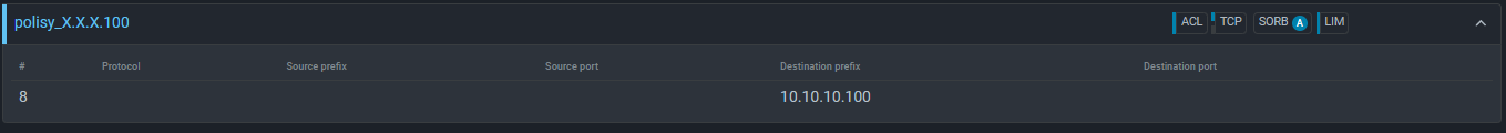 8. dst X.X.X.100 -> policy_X.X.X.100Rule 8 collects the remaining traffic for host X.X.X.100.