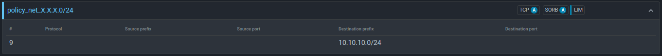 9. dst X.X.X.0/24 -> policy_net_X.X.X.0/24The last rule collects all remaining network traffic.