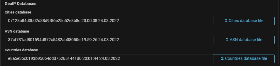 4. Upload GeoIP databases to the system.