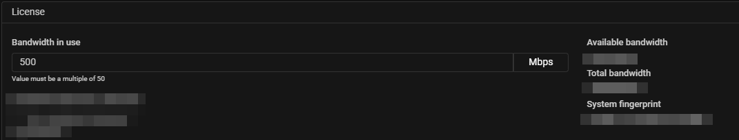 The license key is set in the “License” card on the “System Settings” page. The license